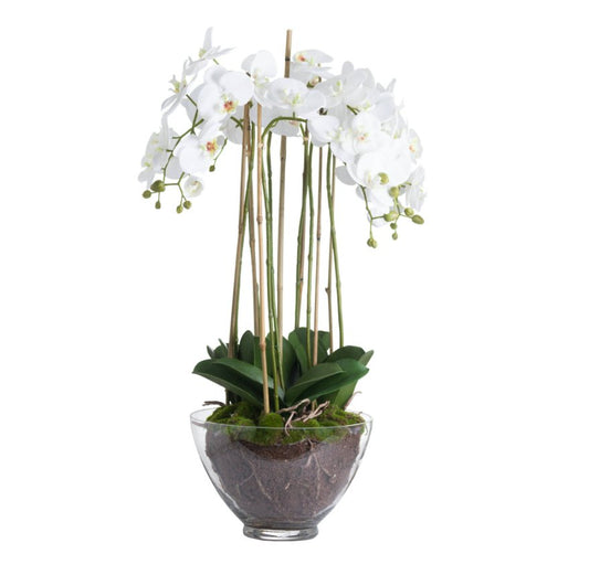 Artificial White Orchid in Glass Pot | Highly Realistic