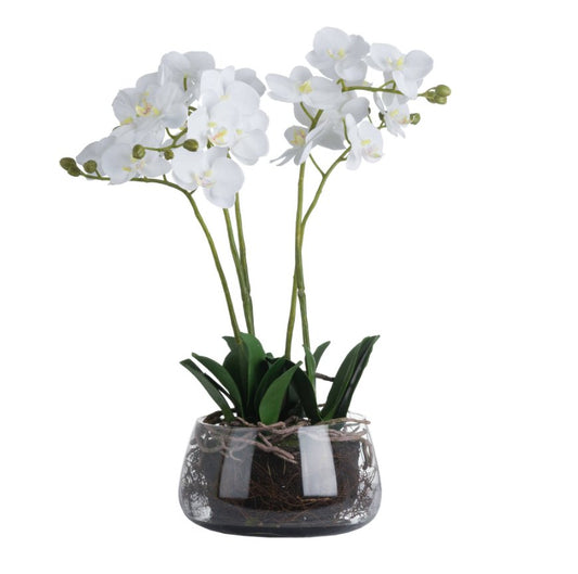 Artificial White Orchid in Glass Pot | Highly Realistic
